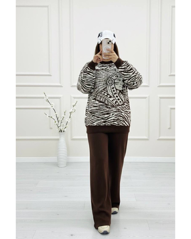 ست بلوز و شلوار بافت مدل سرخ پوستی کد ۱۱۹