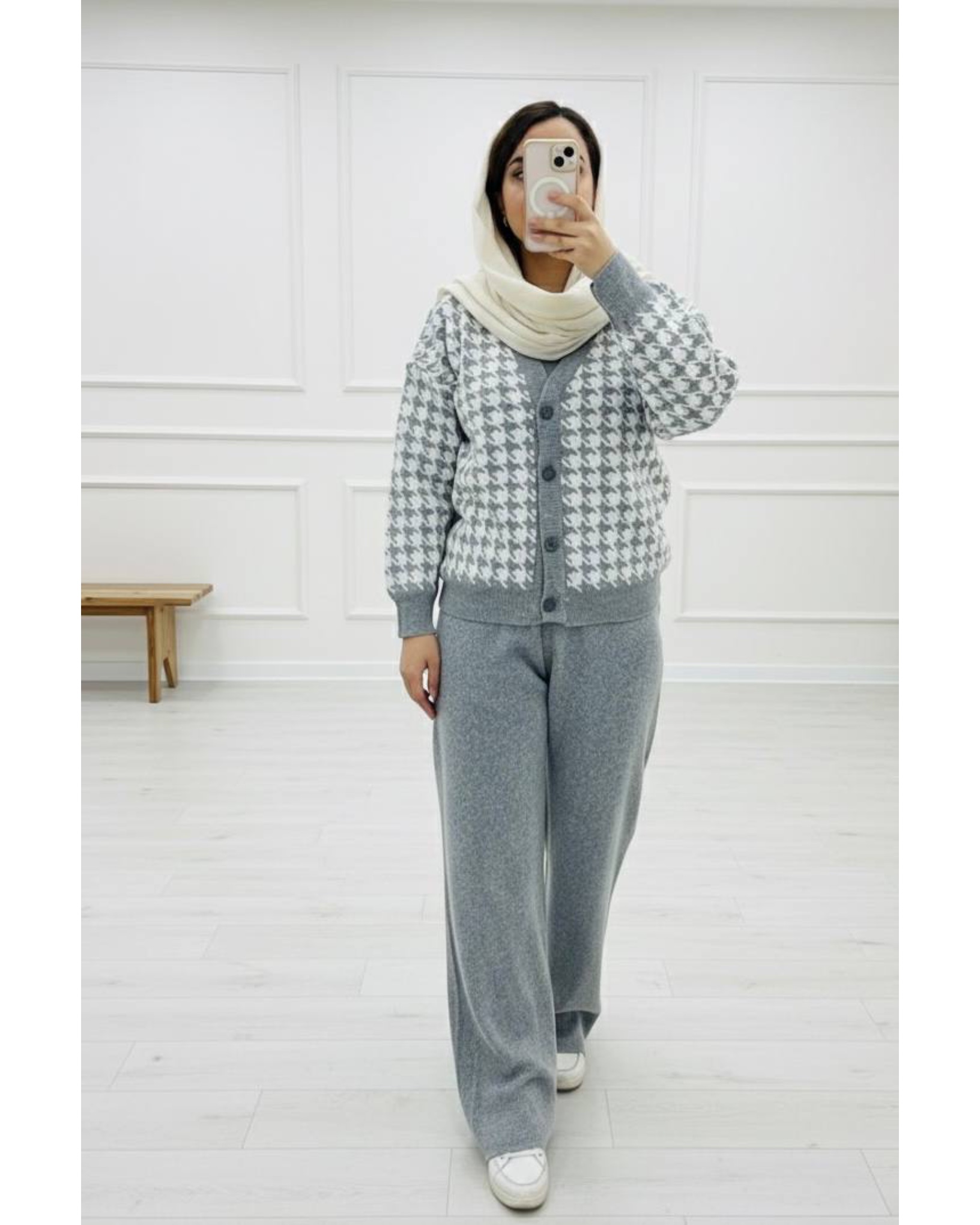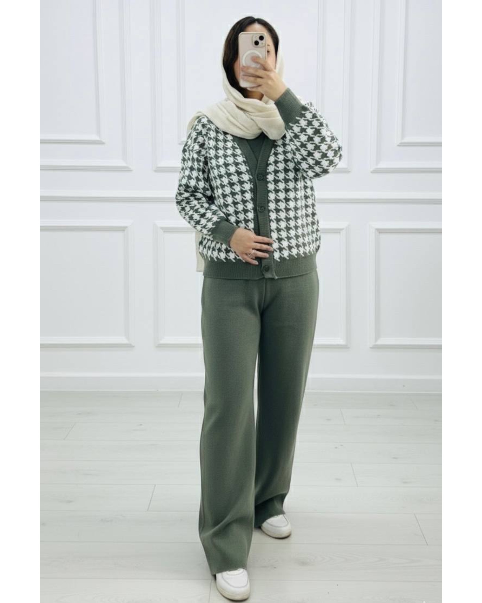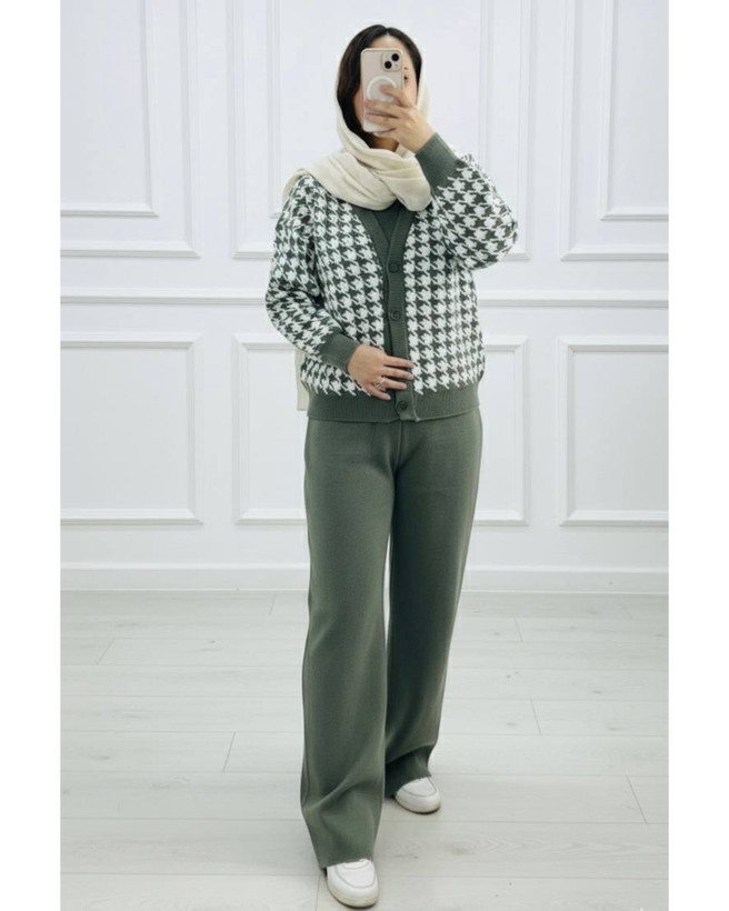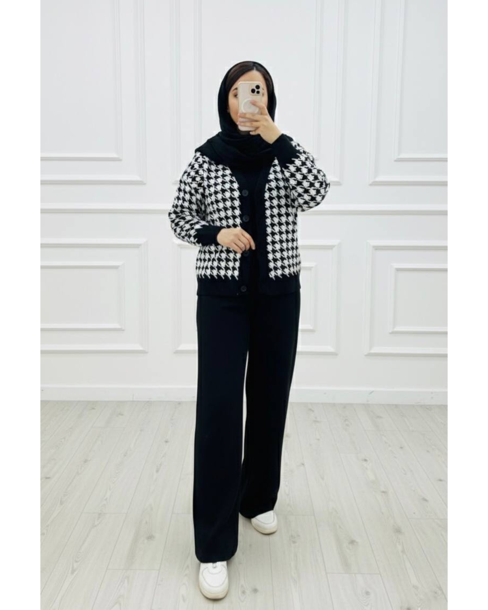 ست ۳ تکه کاردیگن و تاپ و شلوار بافت کد ۱۰۶