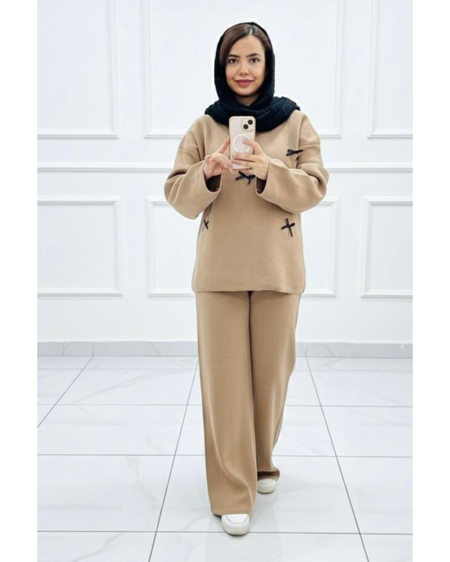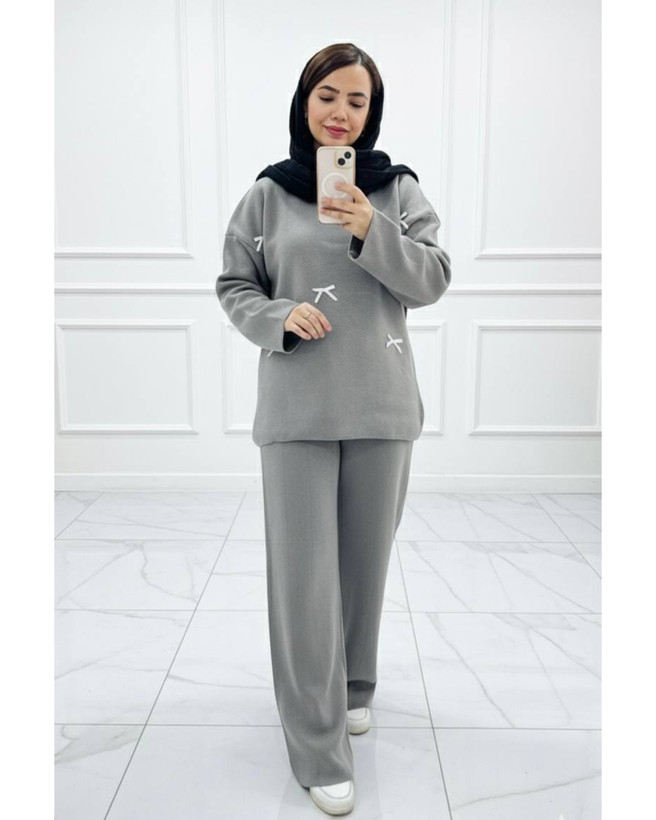 ست بلوز و شلوار بافت مدل پاپیون دار کد ۱۰۳