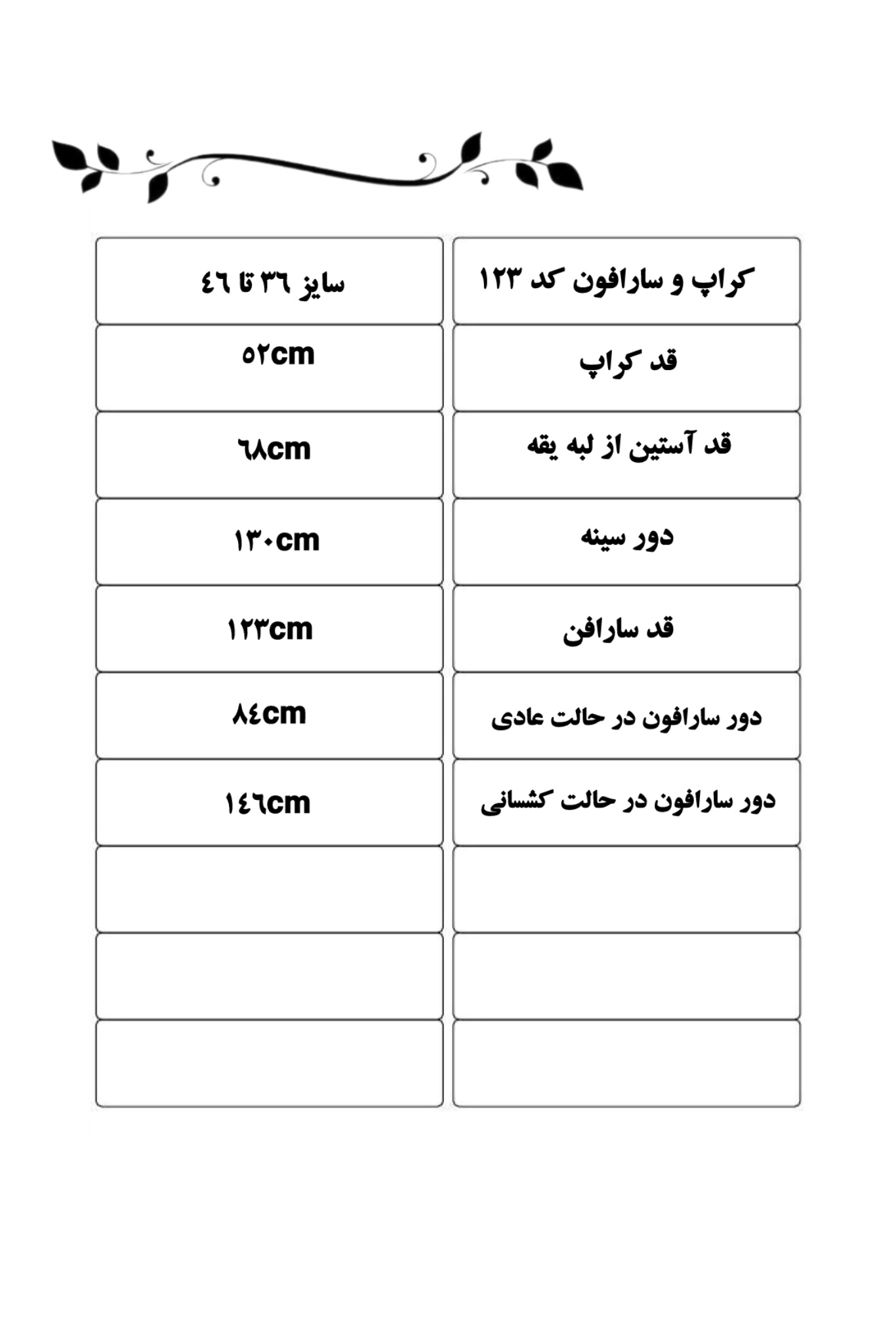 قد آستین از لبه یقه: ۶۸ سانت