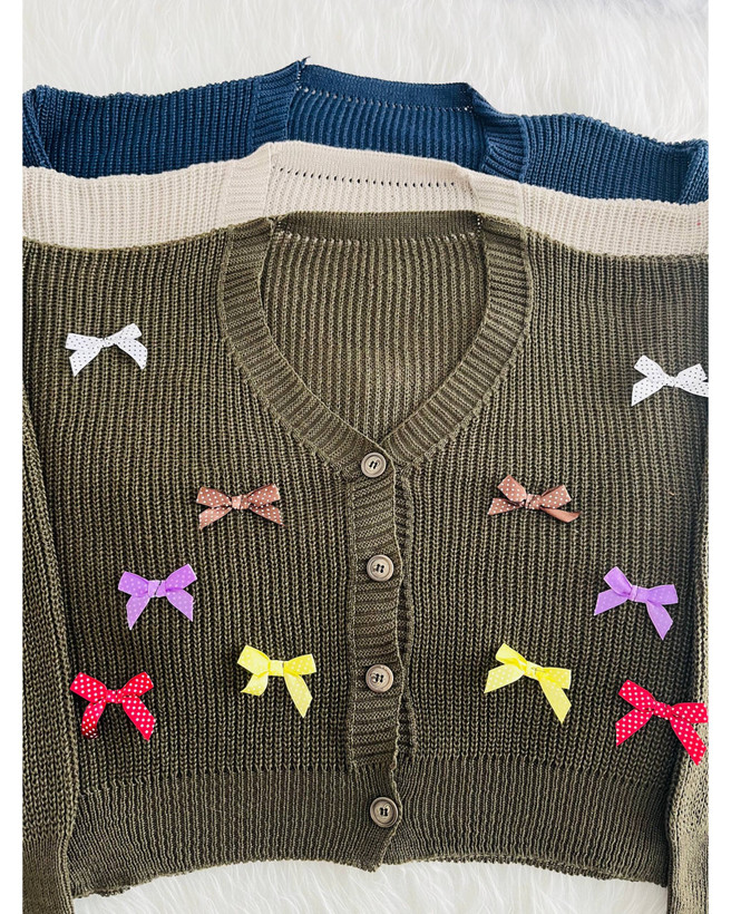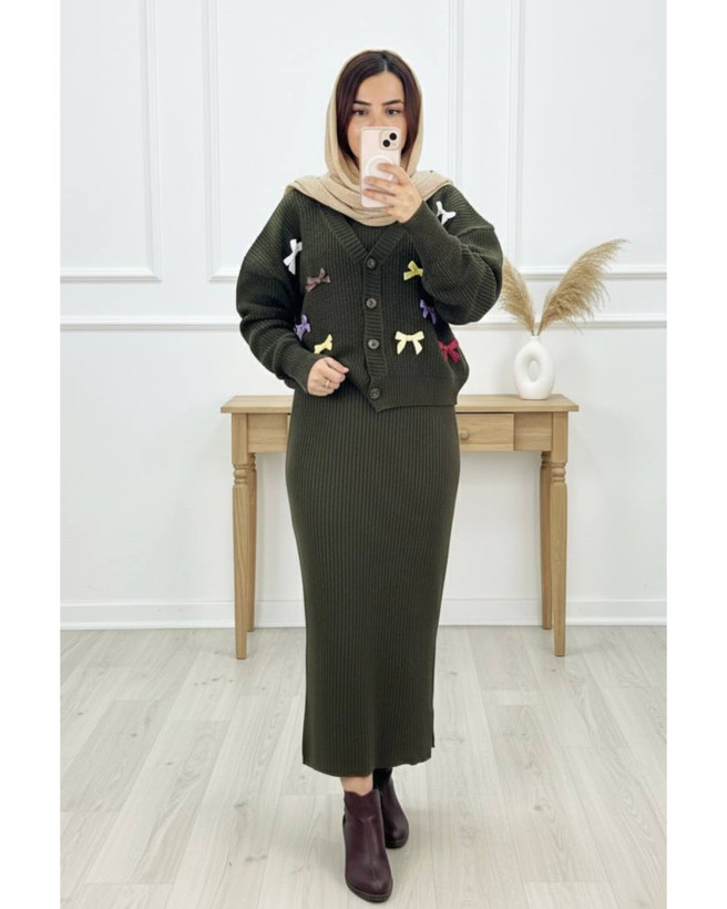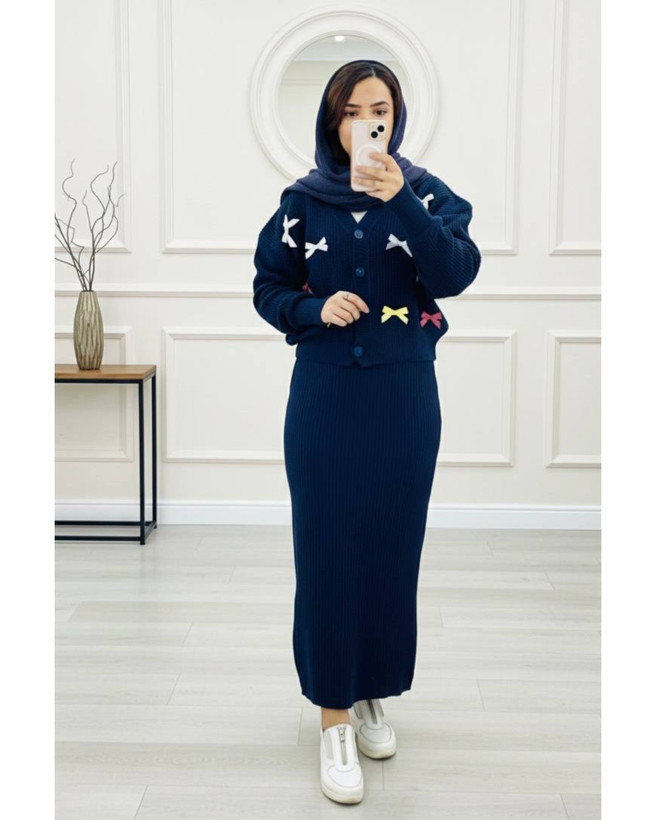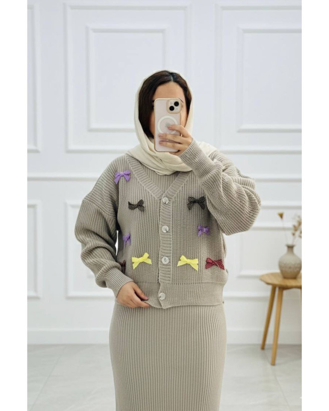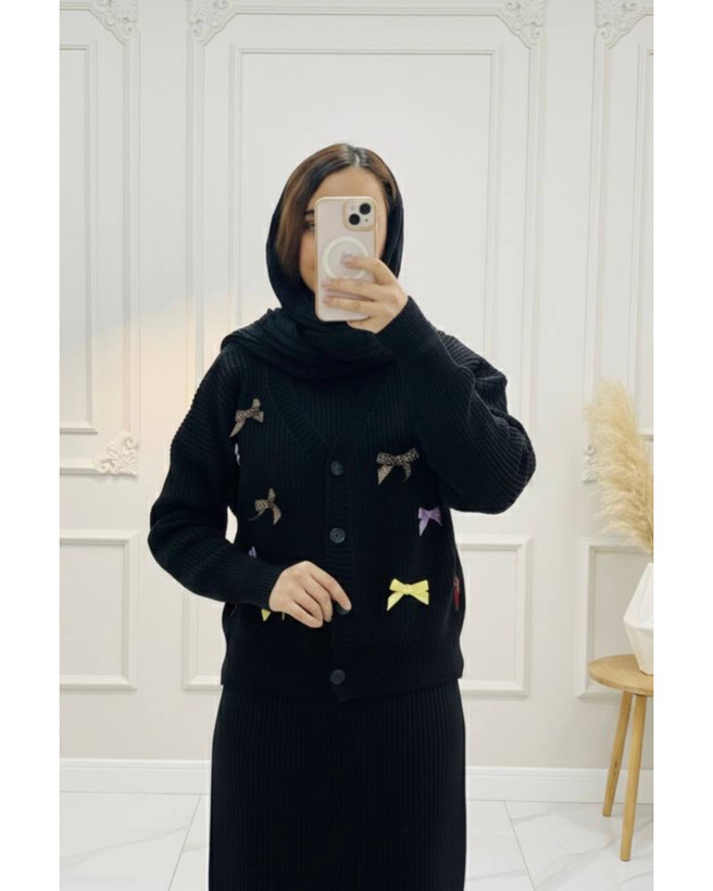 ست کاردیگن و سارافون بافت مدل پاپیون دار کد ۱۱۸