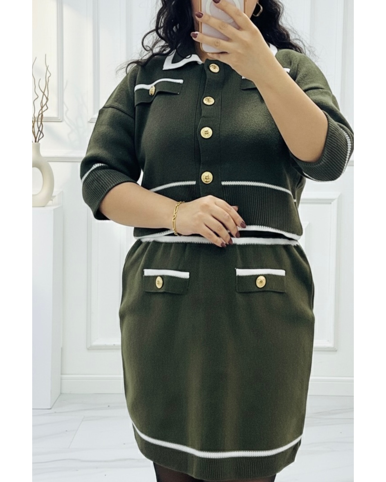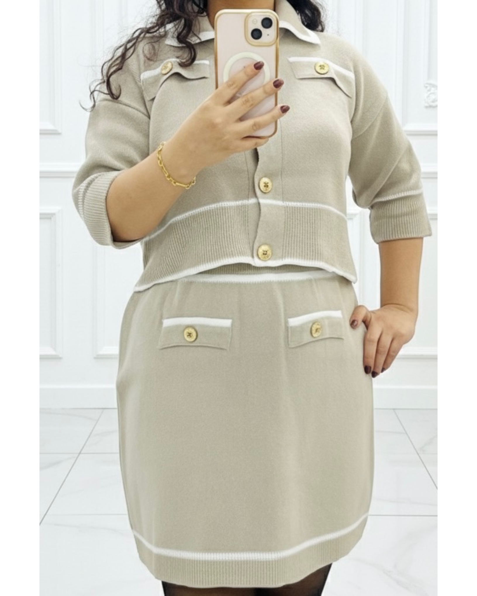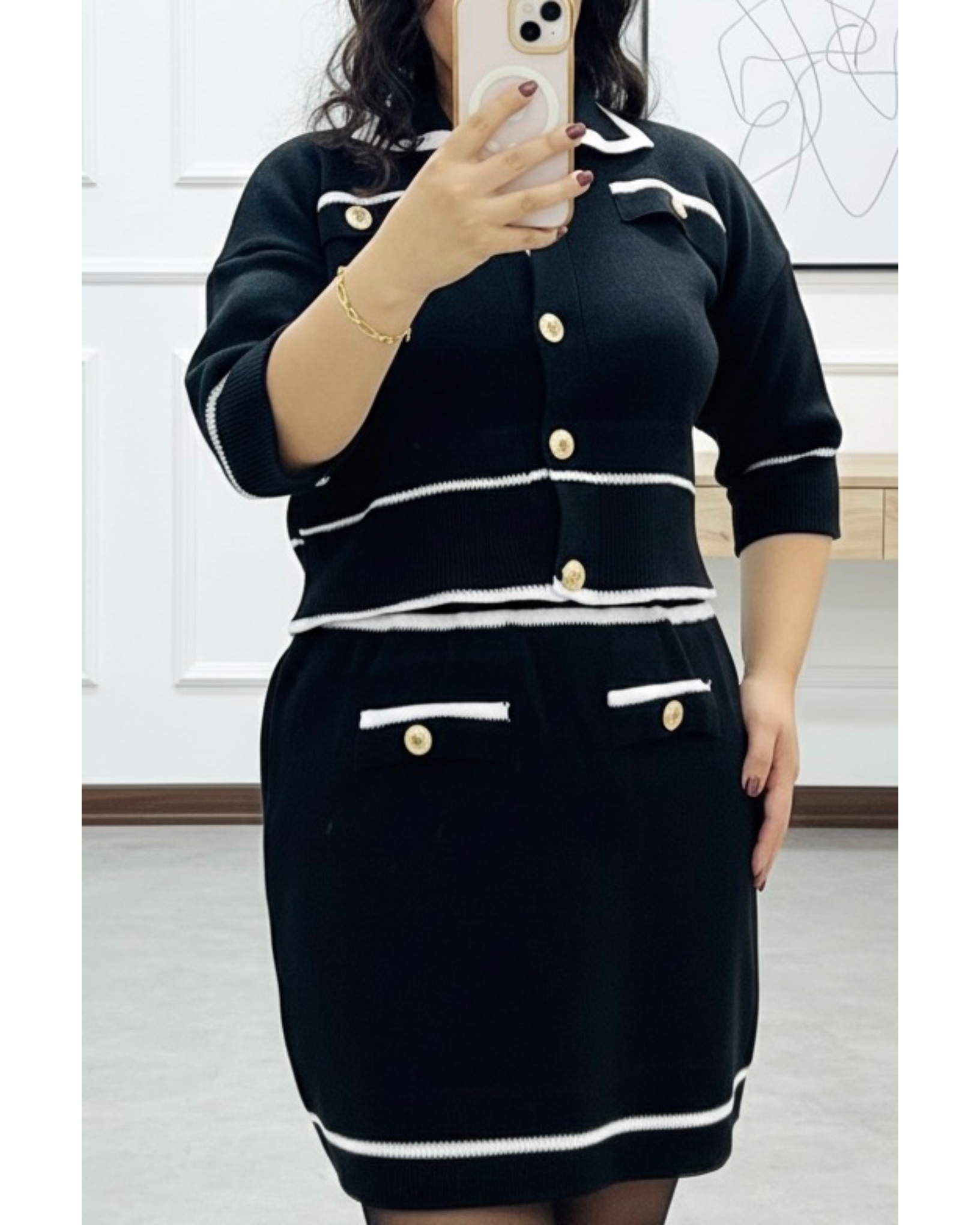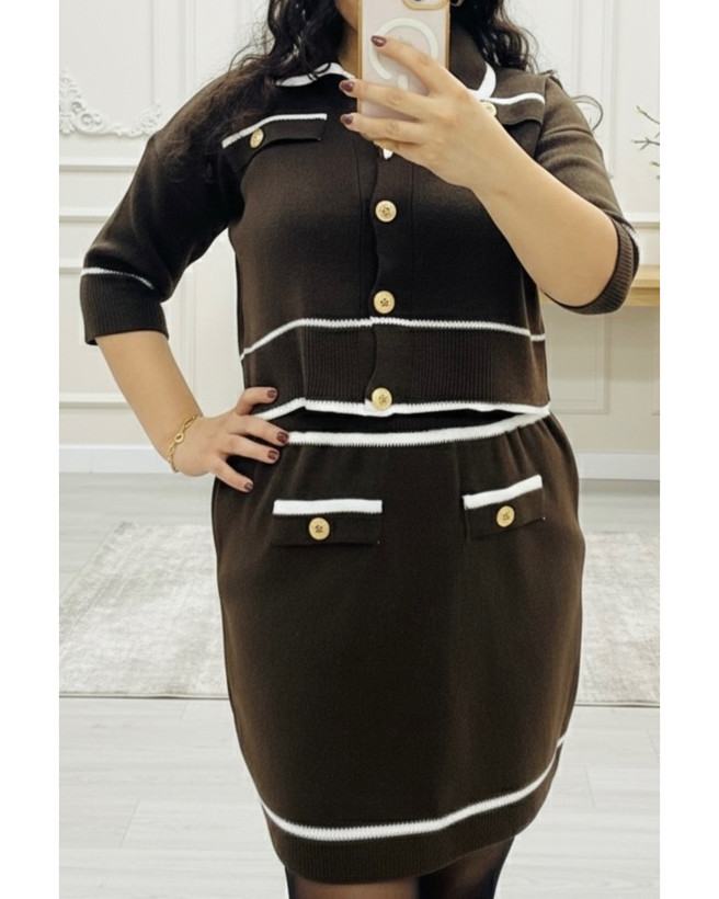 ست کت و دامن بافت مدل دکمه دار کد ۱۰۲